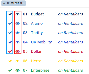 - Icono del ojo: oculta una curva de la competencia solo en los gráficos, lo que resulta útil para eliminar valores atípicos o curvas cercanas a la venta que aplanan el análisis.